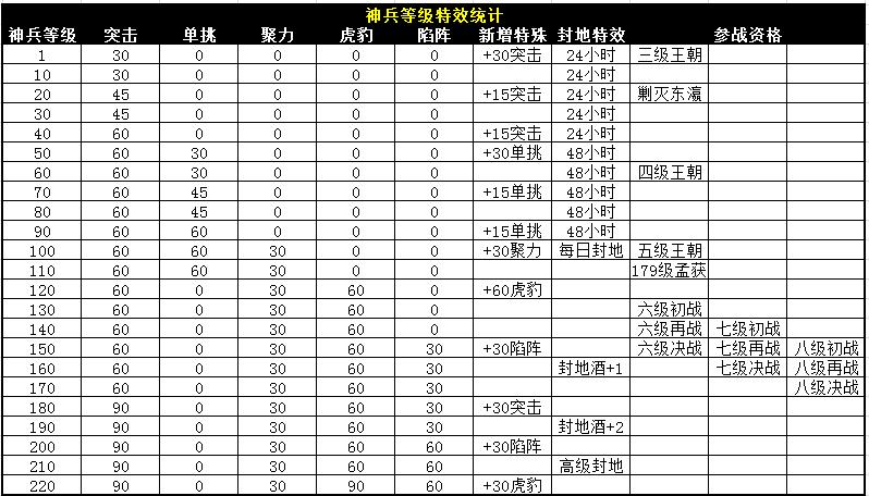 《84攻城掠地》220级神兵全数据汇总